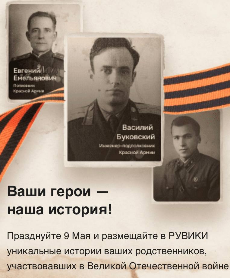 К 80-летию Победы в Великой Отечественной войне АНО «Интернет-Энциклопедии «РУВИКИ» запускает масштабный проект в сфере информации. В крупнейшей российской энциклопедии будут собраны биографии героев страны: от Великой Отечественной войны до наших дней, а у каждого читателя - посетителя сайта - будет возможность увековечить биографию своих родственников, сражавшихся в Великой Отечественной войне, на портале энциклопедии «Ваши герои - наша история».