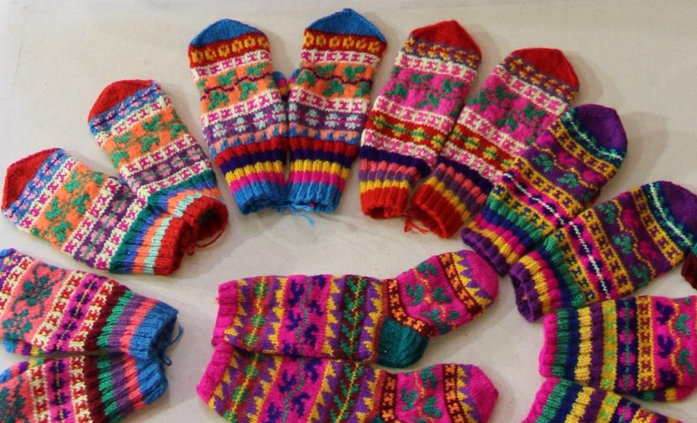 Чулки, связанные в стиле «Теньгушевская семицветка», являются обязательным элементом народного праздничного костюма, придают ему нарядность. В старину их носили не с лаптями, а с галошами.
