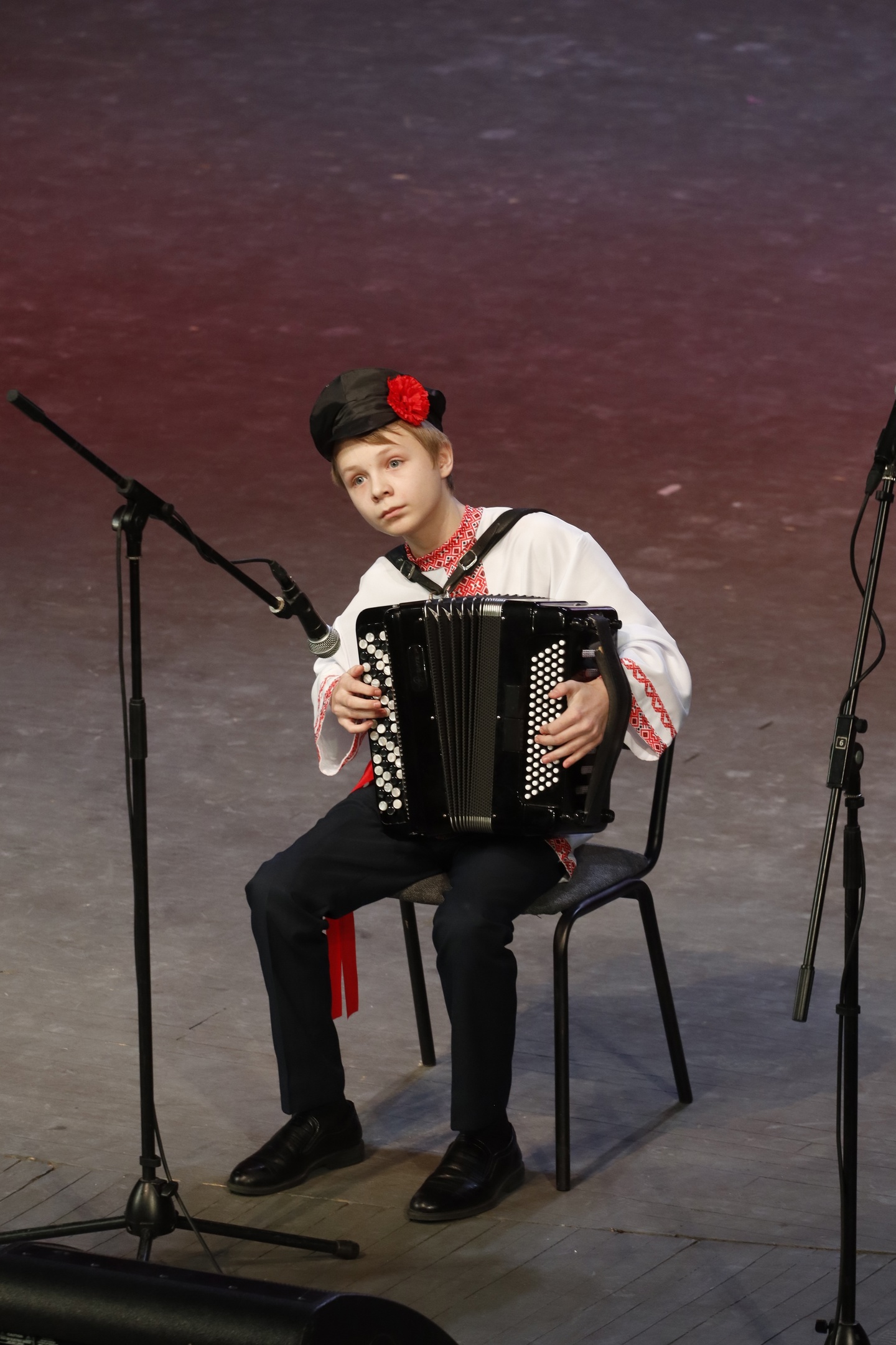 Семейная тема продолжилась в многонациональных частушках семейного ансамбля Мироновых, а «Музыкальным моментом» на баяне порадовал зрителей Матвей Матвеев.