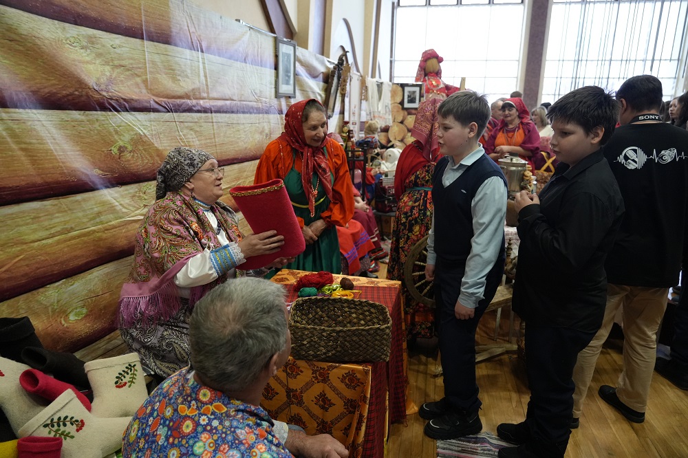 На выставке муниципальные районы представили подворья четырёх народов – мокшан, эрзян, русских и татар. Каждое подворье стало настоящим окном в прошлое: гости могли увидеть воссозданный национальный быт, старинные предметы обихода, традиционные костюмы и их элементы, изысканную вышивку и другие самобытные изделия.Особую атмосферу создали мастера декоративно‑прикладного искусства. Они не только продемонстрировали свои фирменные работы, но и провели увлекательные мастер‑классы. Посетители смогли понаблюдать за искусством русской вышивки и штопки валенок, освоить плетение поясов и коклюшечное кружево, познакомиться с семицветным вязанием и вышивкой тюбетеек, увидеть резьбу тавлинской игрушки и плетение из бересты. Мастера показали тонкости создания обрядового полотенца, мокшанской вышивки, набедренного украшения (пулай) и татарских полотенец.
