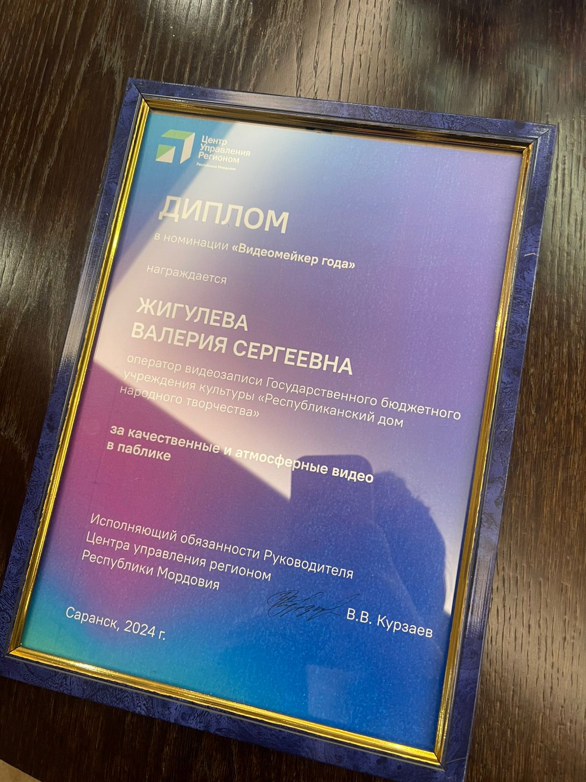 Среди награжденных – оператор видеозаписи Республиканского Дома народного творчества – Валерия Сергеевна Жигулева. Она получила диплом в номинации «Видеомейкер года».