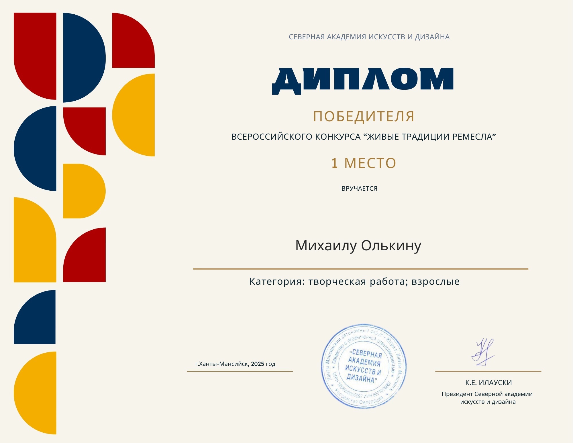 1 место – Олькин Михаил Юрьевич – мастер плетения из лозы (г. о. Саранск);2 место – Бедина Валентина Александровна – мастер по художественной керамике (Чамзинский муниципальный район).