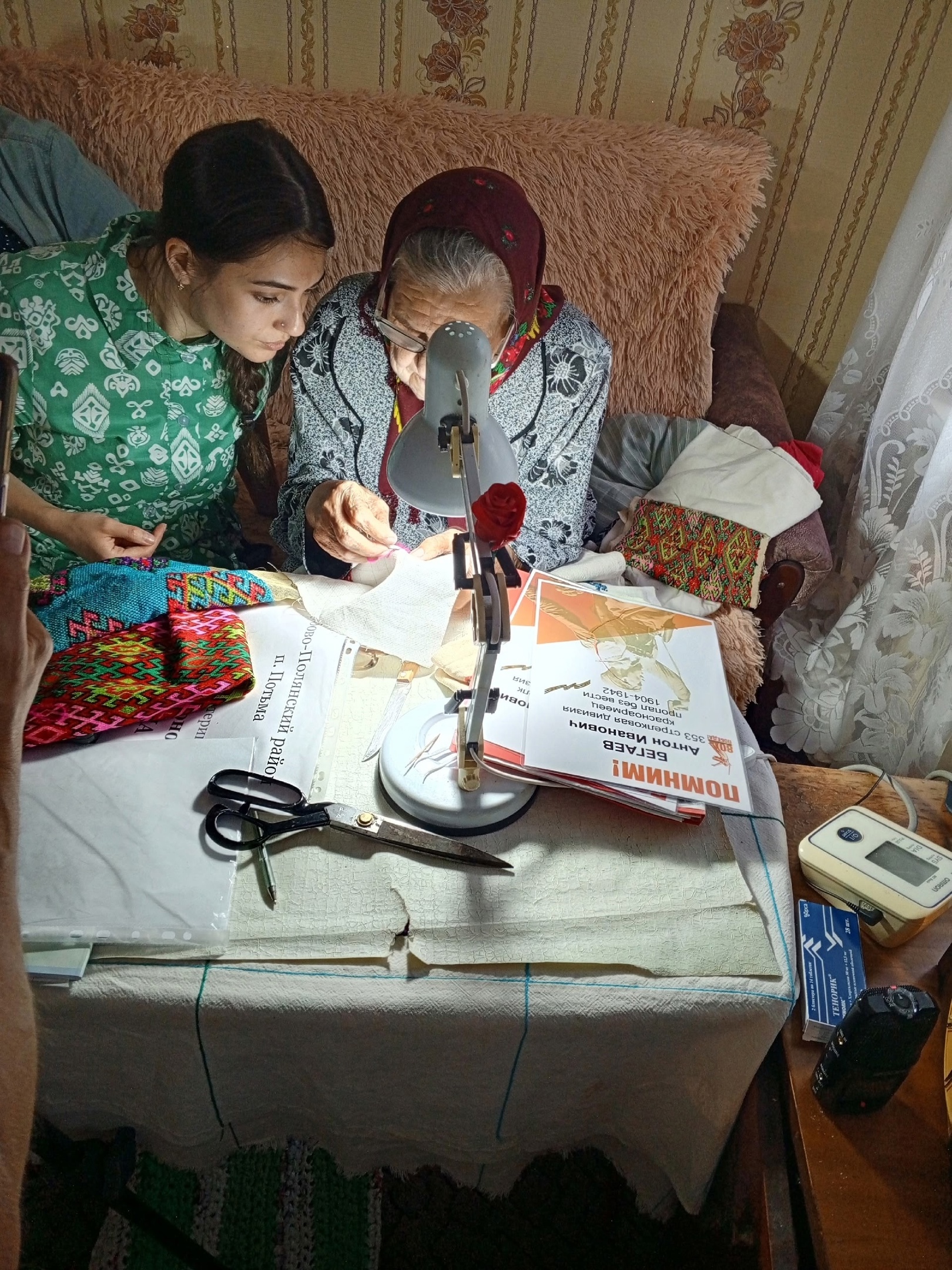 Местные жители поделились с исследователями своими традициями и обычаями, а фольклорный ансамбль «Ляйня» порадовал гостей исполнением народных песен.Завершился первый день экспедиции встречей со знаменитой вышивальщицей – Зинаидой Антоновной Спиркиной из п. Потьма. В свои 83 года она по-прежнему демонстрирует невероятное мастерство, создавая прекрасные работы.