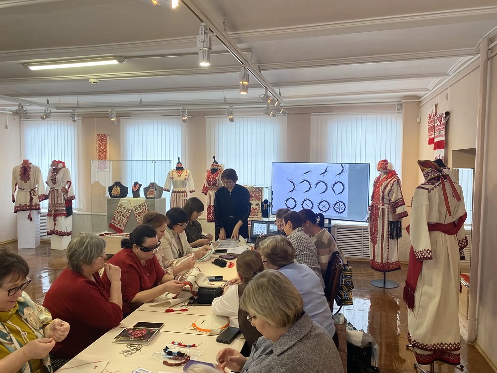 В ходе встречи участники познакомились с обереговыми функциями вышивки и узнали о семантике отдельных орнаментальных элементов, обсудили современные проекты, подтверждающие актуальность и востребованность этого вида искусства. Особое внимание было уделено уникальным швам эрзянской вышивки – их технике и специфике. Завершилась программа практической частью, где гости смогли применить полученные знания на практике и прикоснуться к вековым традициям своими руками.