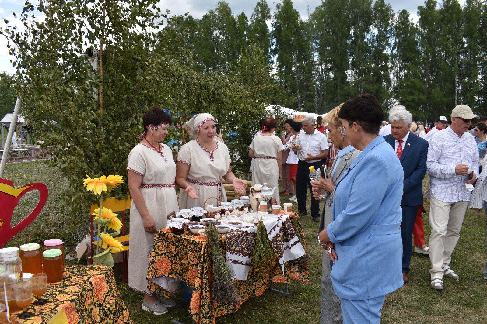 В этом году в этнодеревне распахнули свои двери национальные подворья (эрзянское, мокшанское, русское, татарское). На выставке изделий народных промыслов можно было увидеть многообразие видов и жанров декоративно-прикладного искусства: резьба по дереву, художественная роспись, гончарное искусство, национальная вышивка, лозоплетение, изготовление деревянной игрушки с росписью, бисероплетение, лоскутное шитье и много другое. Для участников праздника работал ремесленный двор, где гости могли вырезать деревянные фигурки, связать национальный поясок, смастерить своими руками национальную свистульку, а также приобрести сувениры.