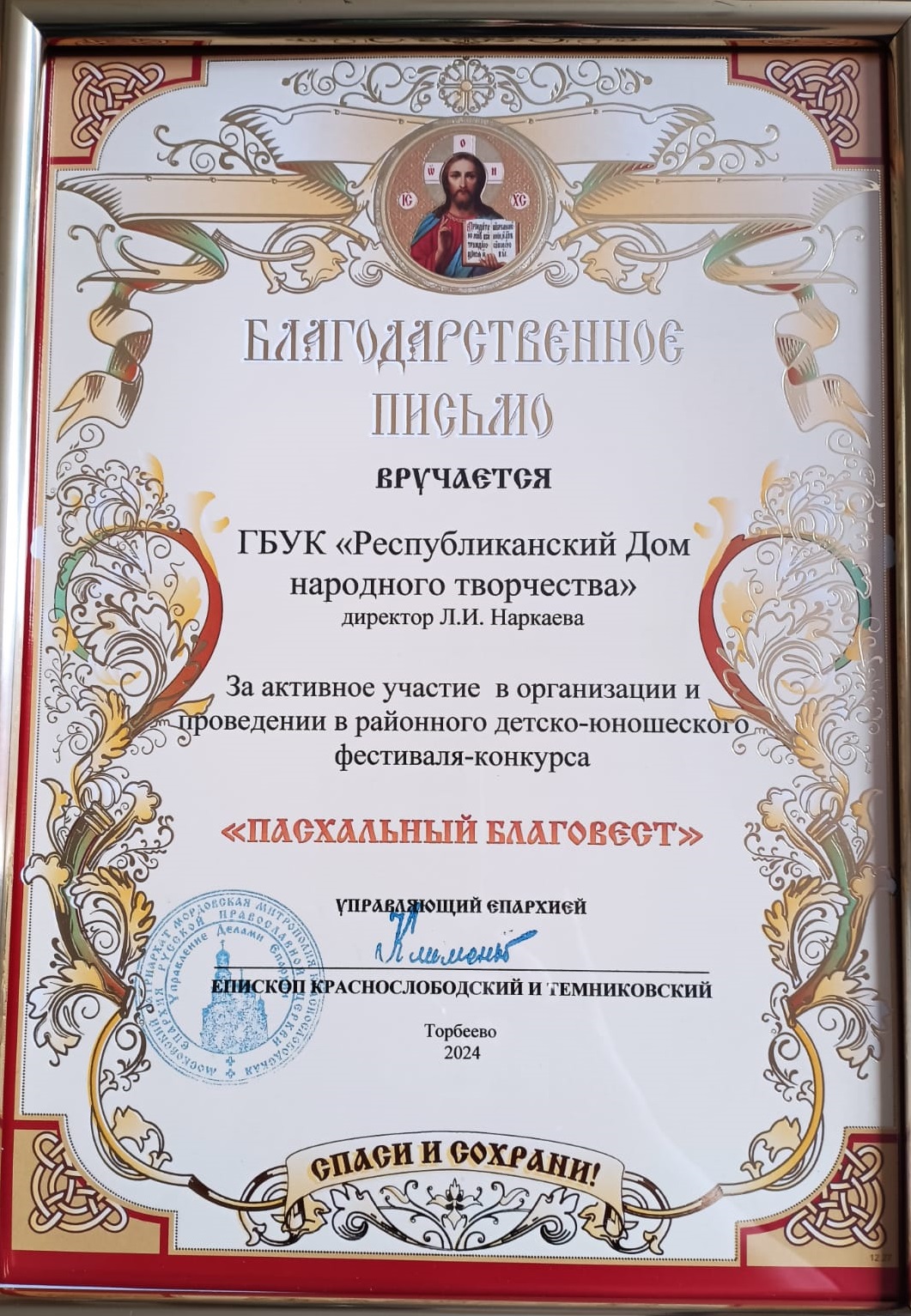 Фестиваль организован по благословению Его Преосвященства Епископа Краснослободского и Темниковского Климента, при участии Главы Торбеевского муниципального района, отдела образования, отдела по культуре, клуба «Аллегро» – Торбеевского ЛПУМГ – филиала общества «Газпром трансгаз Нижний Новгород», а также при финансовой поддержке акционерного общества Группы компаний «Талина».